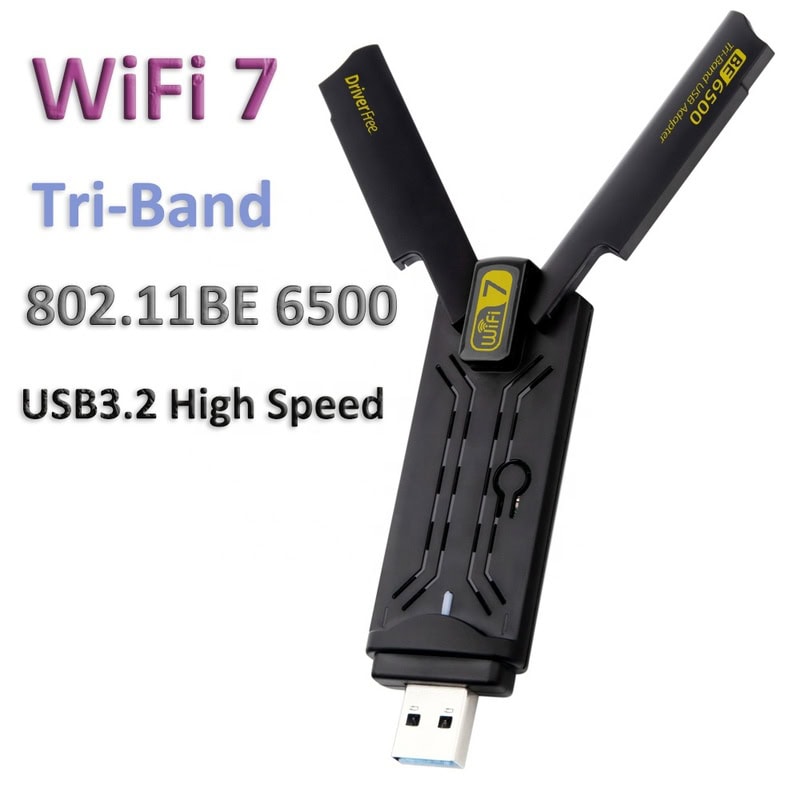 765002 WIFI 7 Tri Band 2.4G/5G/6G Wireless USB Adapter W/Antenna 6500Mbps 802.11BE